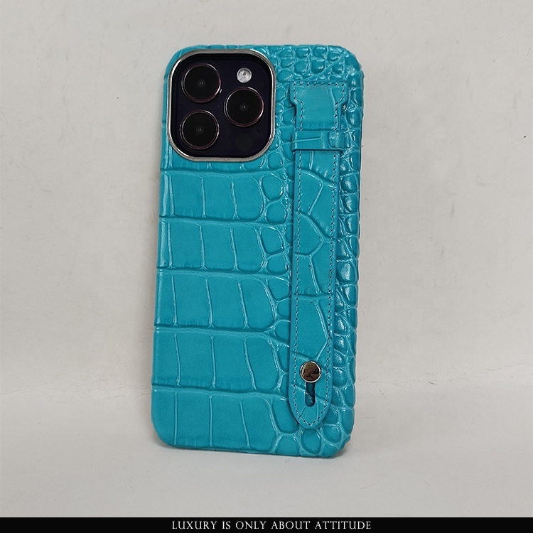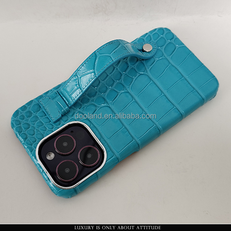 | Style | HIgh quality genuine Italian embossed crocodile leather phone case for 14 Pro max with strap | |