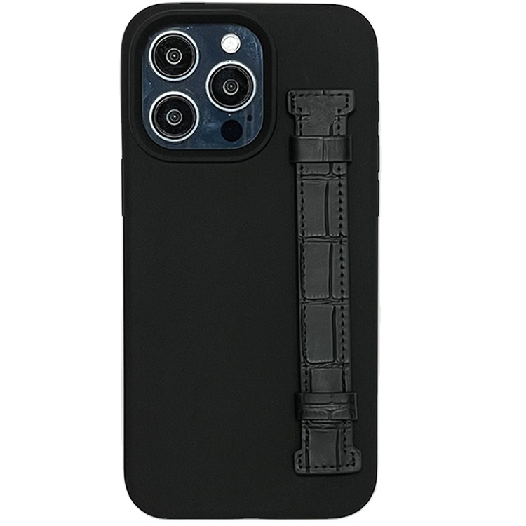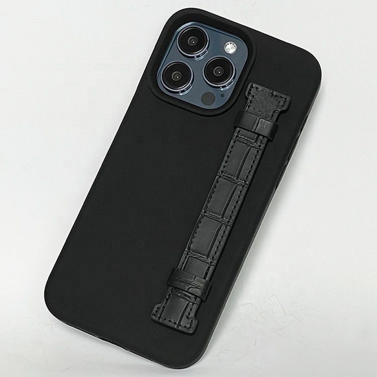 - Silicone phone case with leather finger strap for iphone 15 pro max