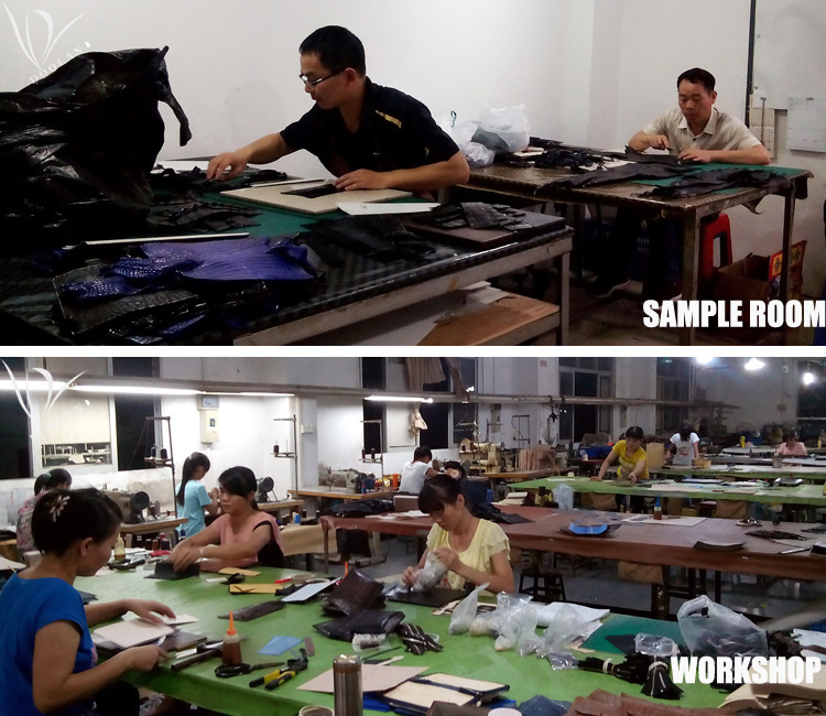 We own a separate workshop of about 20 people and a sampling room of 5 people, 3 engineers and 2 super experienced technicians. This workshop is for production only for real exotic leather goods, such as bags, belts, wallets and small accessories. Most of the exotic skins are available say crocodile skin(caiman, siam, alligator, prosus), ostrich skin (from south africa), python skin, lizard skin,stingray skin, snake skin, deer skin, sharkskin, eel skin, fish skin etc.