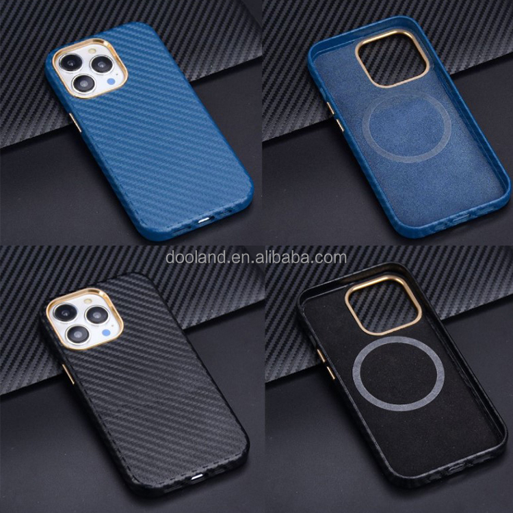 New style genuine carbon fiber texture pu leather fully wrapped mobile phone case for iphone 15 pro max