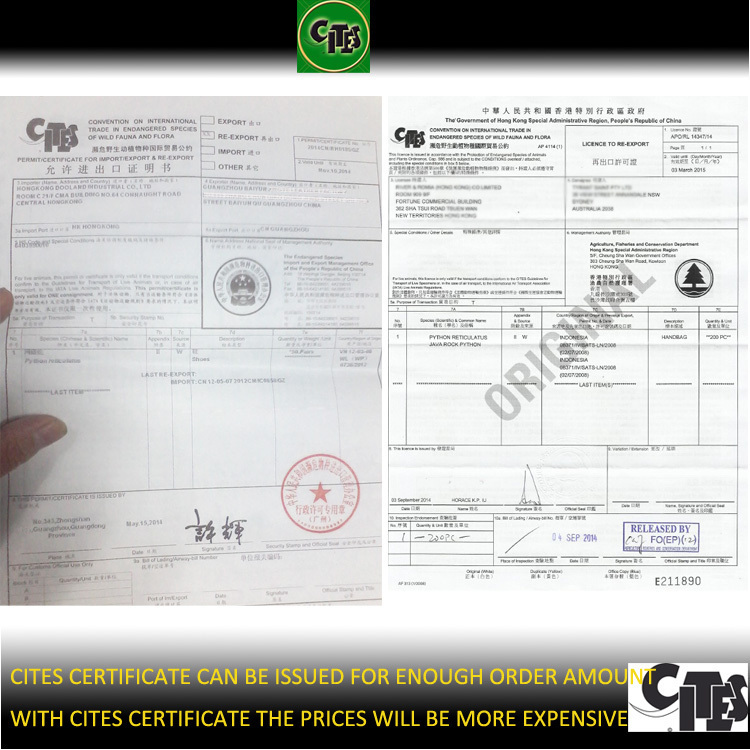 We own a separate workshop of about 20 people and a sampling room of 5 people, 3 engineers and 2 super experienced technicians. This workshop is for production only for real exotic leather goods, such as bags, belts, wallets and small accessories. Most of the exotic skins are available say crocodile skin(caiman, siam, alligator, prosus), ostrich skin (from south africa), python skin, lizard skin,stingray skin, snake skin, deer skin, sharkskin, eel skin, fish skin etc.